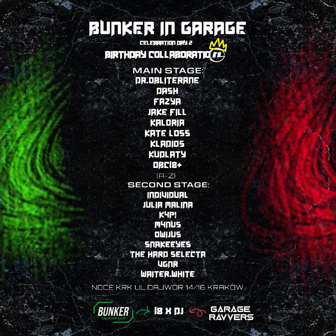 🔥 Kolejna edycja GARAGE RAVVERS nadchodzi – v5.0 BUNKER in GARAGE (Ravvers!) już 25 Października w Noce KRK, Kraków. Czekają na Ciebie brutalne BPM-y, bezkompromisowe brzmienia i czysta rave’owa energia!