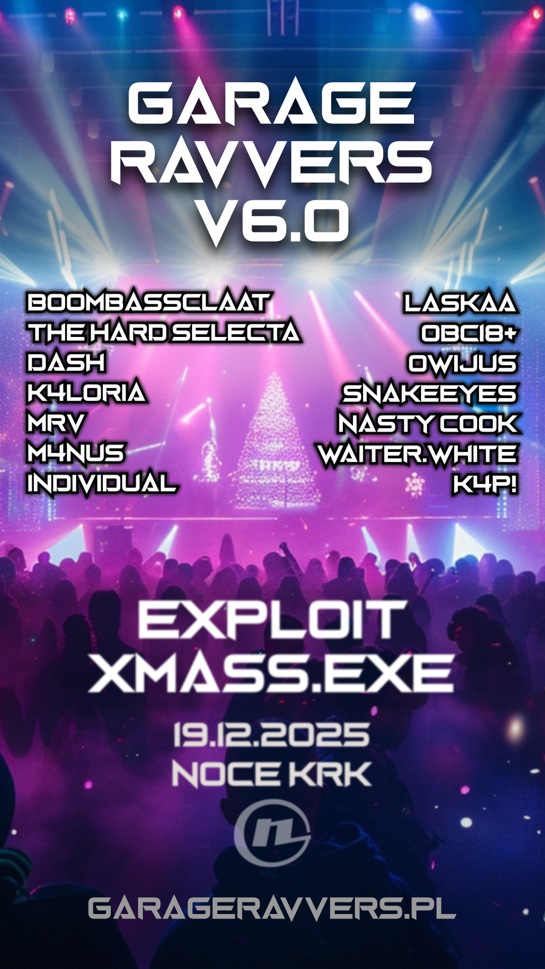 🔥 Kolejna edycja GARAGE RAVVERS nadchodzi – v6.0 EXPLOIT XMASS.EXE już 19 Grudnia w Noce KRK, Kraków. Czekają na Ciebie brutalne BPM-y, bezkompromisowe brzmienia i czysta rave’owa energia!